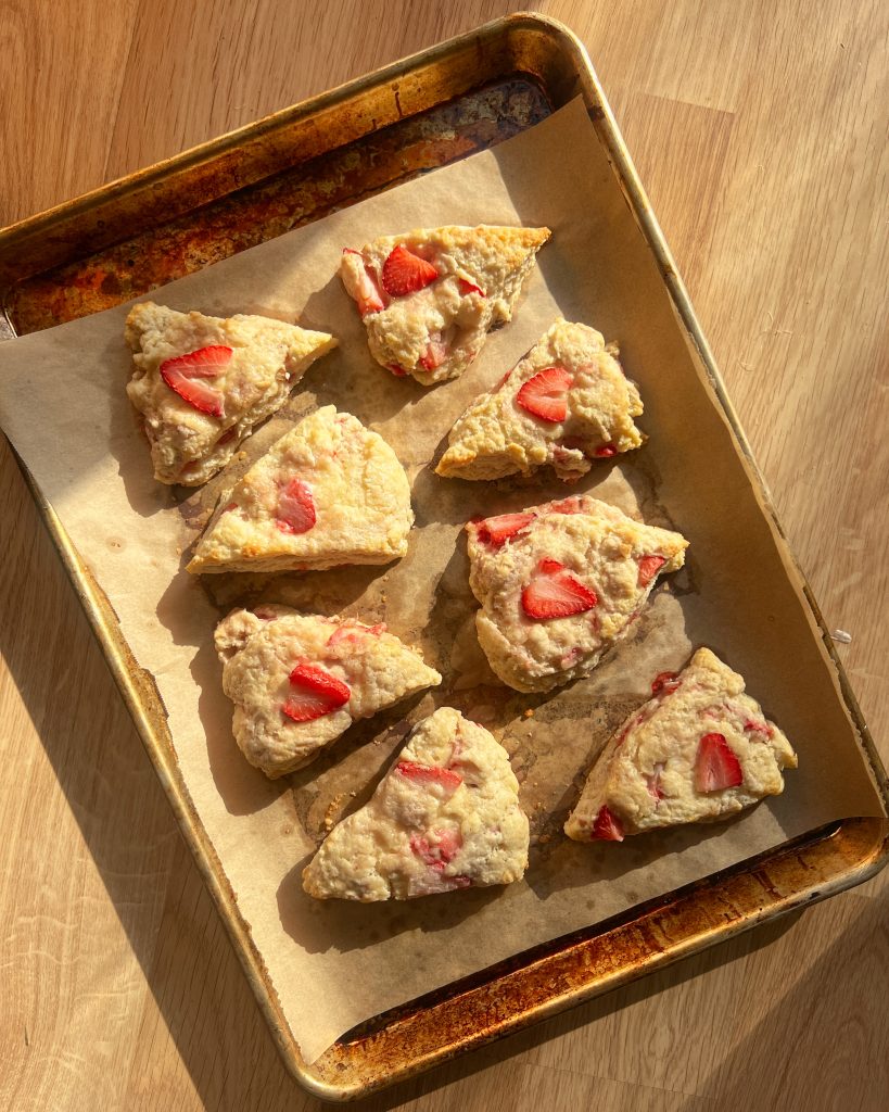 If you make these Strawberry Scones, let me know down below by leaving a comment and review! I love to hear from you guys. It’s so fun to share food stories & cook these recipes together. Also, take a picture of your dish and share it with me on Instagram – tagging me @saltedseasons. It makes my day to see what y’all are whipping up. Cheers to handmade meals!